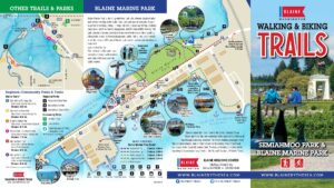 Blaine Walking & Biking Trails Map 2025 – Includes Semiahmoo Spit and Blaine Marine Park. Find attractions, restaurants, walking paths and trails.